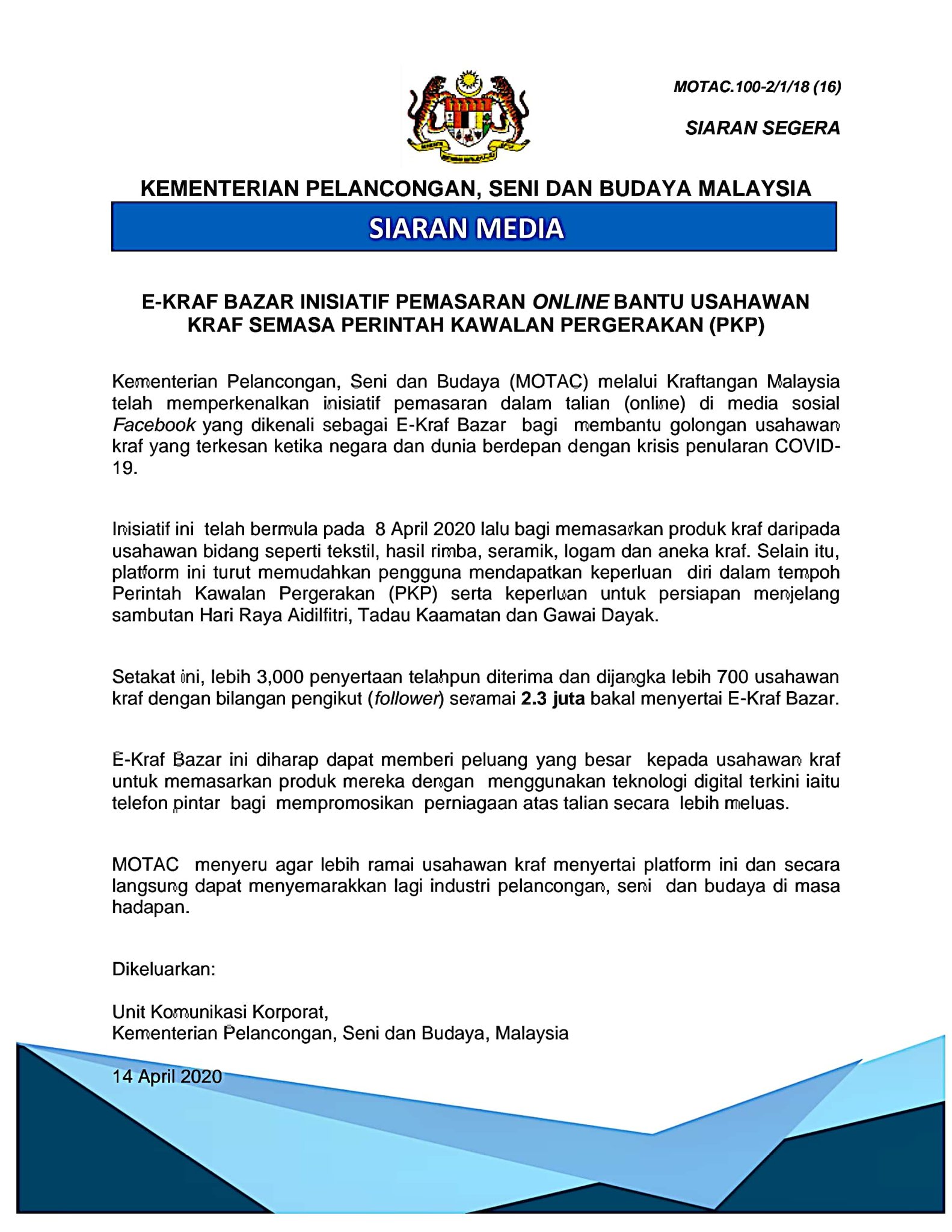 Motac On Twitter Siaran Media E Kraf Bazar Inisiatif Pemasaran Online Bantu Usahawan Kraf Semasa Perintah Kawalan Pergerakan Pkp Mymotac Stayathome Kitajagakita Https T Co Pmwjyjnj20